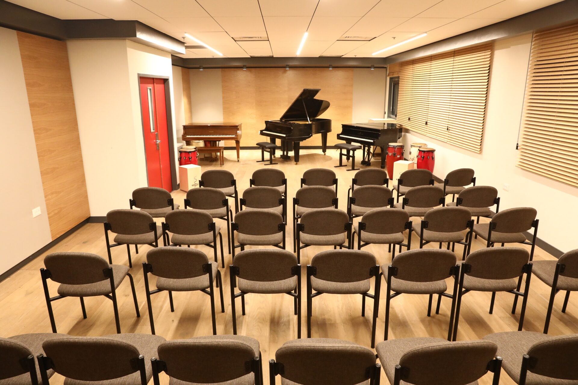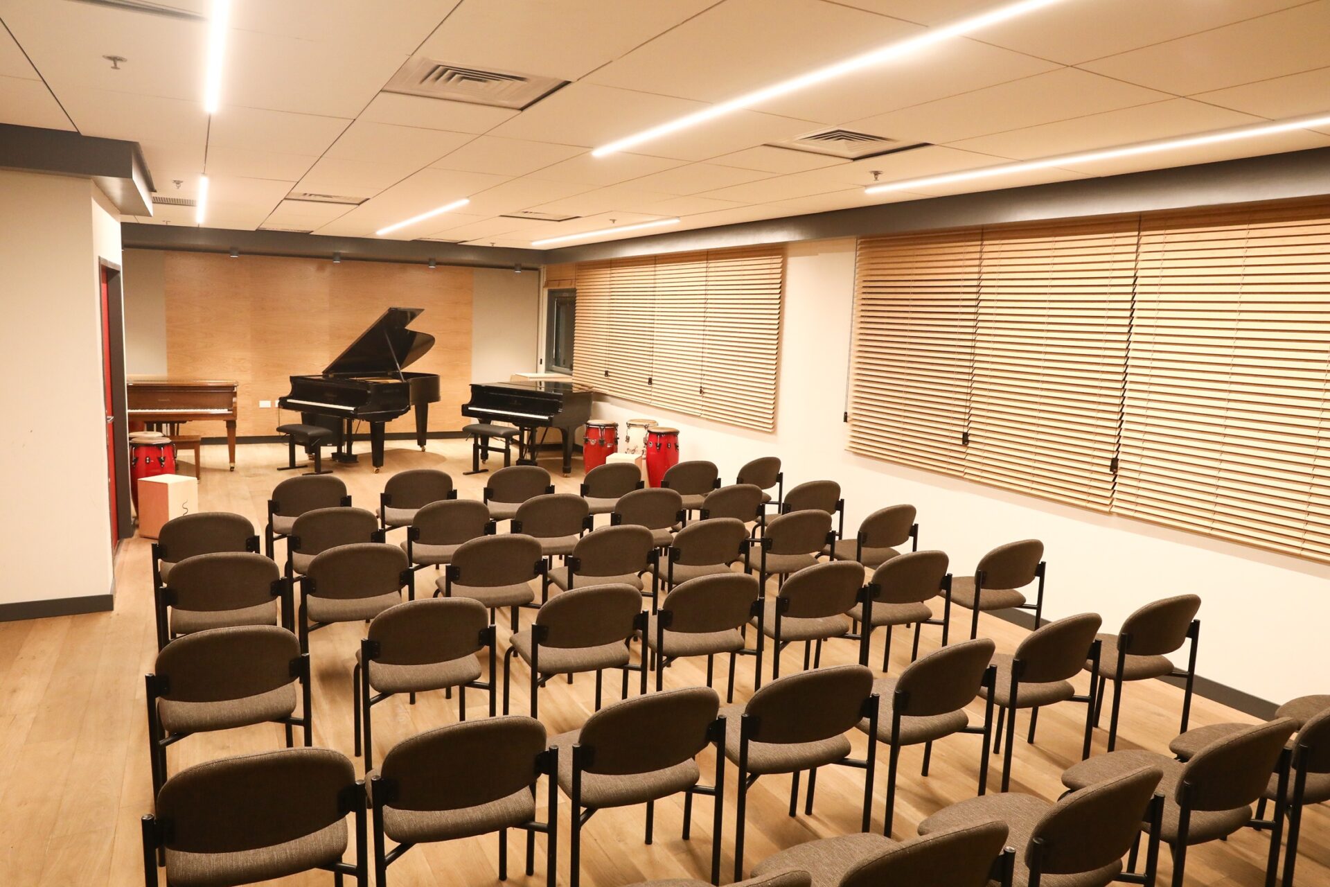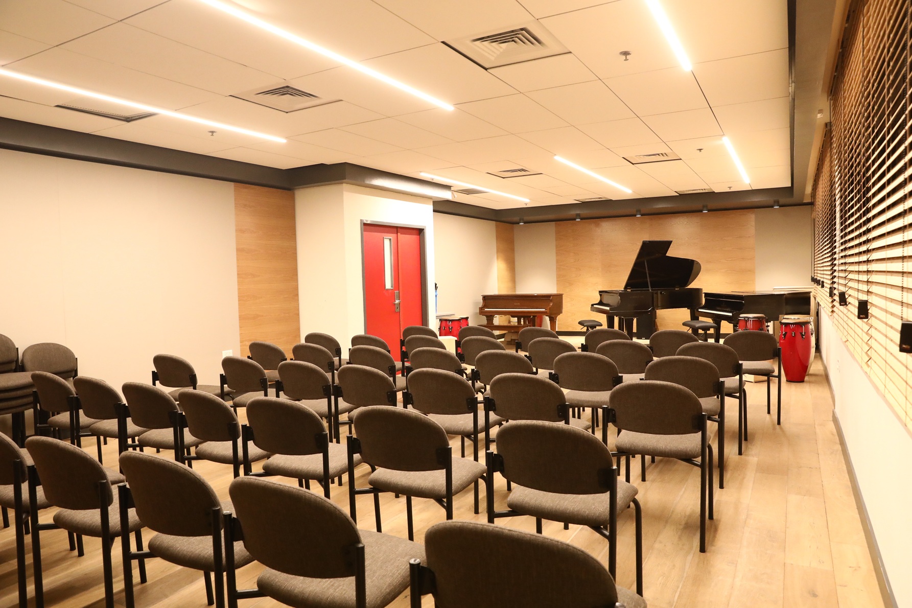 מכיל עד 80 מקומות ישיבה בארגון מודולרי ומצויד במערכת אקוסטיקה ייחודית מתקדמת.